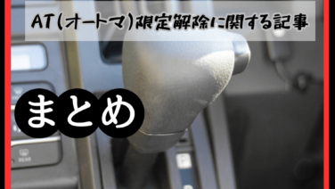 車に関する悩みや解決方法AT(オートマ)限定解除に関するまとめ記事 AT(オートマ)限定解除に関する記事をまとめています。解除のやり方や費用・期間・試験内容など。 2025.12.23車に関する悩みや解決方法