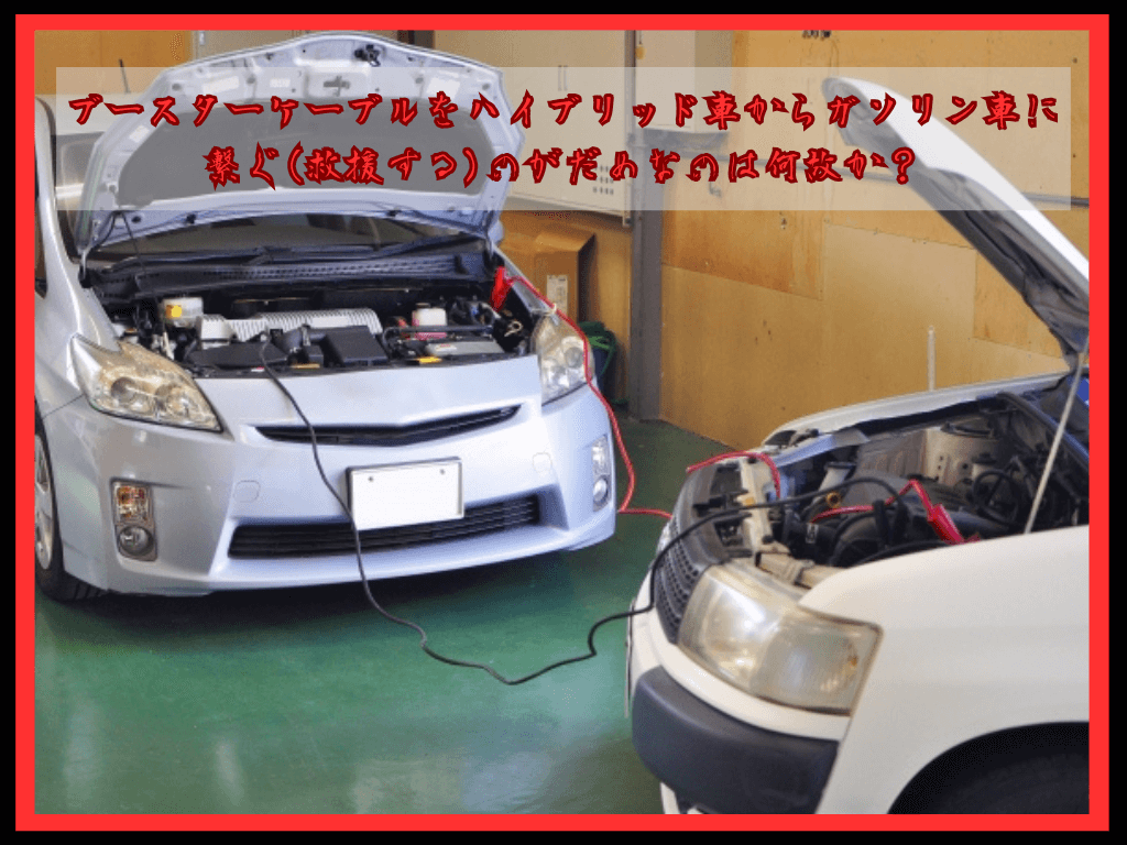 ブースターケーブルを仮に繋いだ場合は大容量の電気が流れることになる。大容量の電気が逆流することによりハイブリッドシステムに負荷がかかり故障に繋がる。